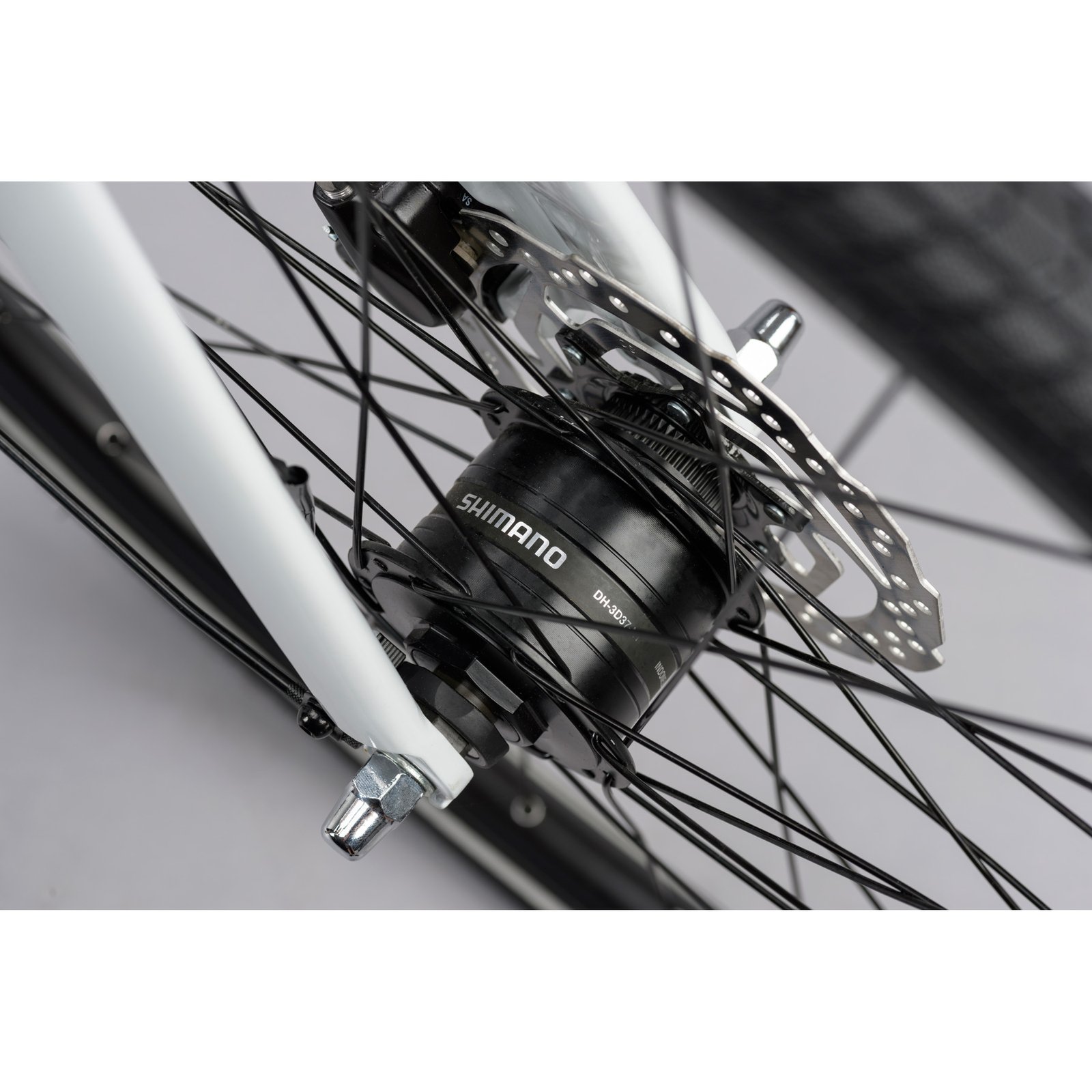 Wet or dry, day or night, the Supernova EQ has you covered. Robust, full length aluminium mudguards come as standard and the Shimano dynamo front hub powers the integrated front and rear lights.